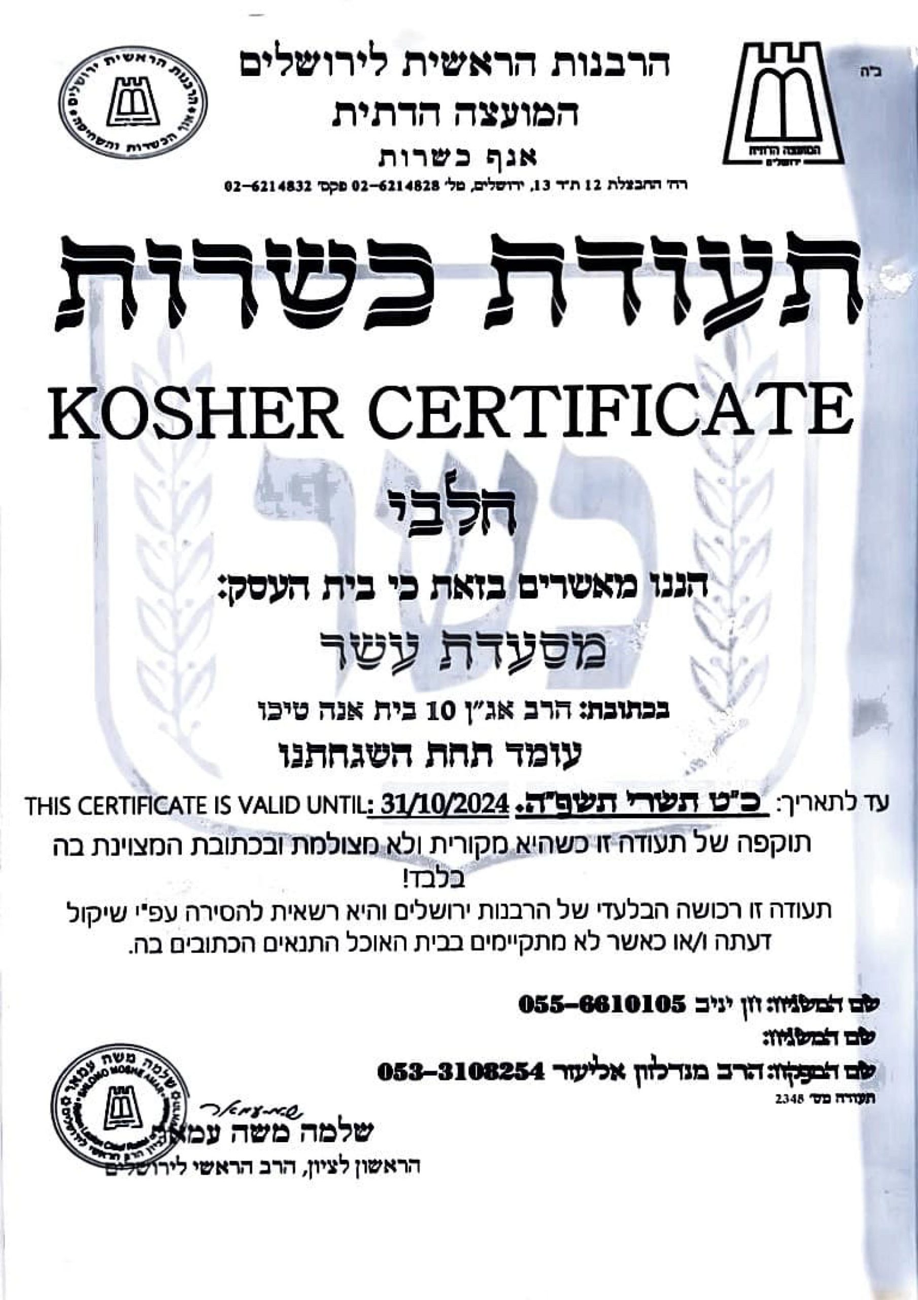 המסעדה כשרה בהשגחת הרבנות ירושלים